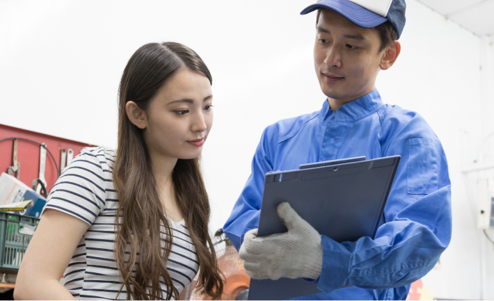 車検・点検について走行距離・ご予算に合わせたプランのご提案し、プロの整備スタッフがフォロー いたします。